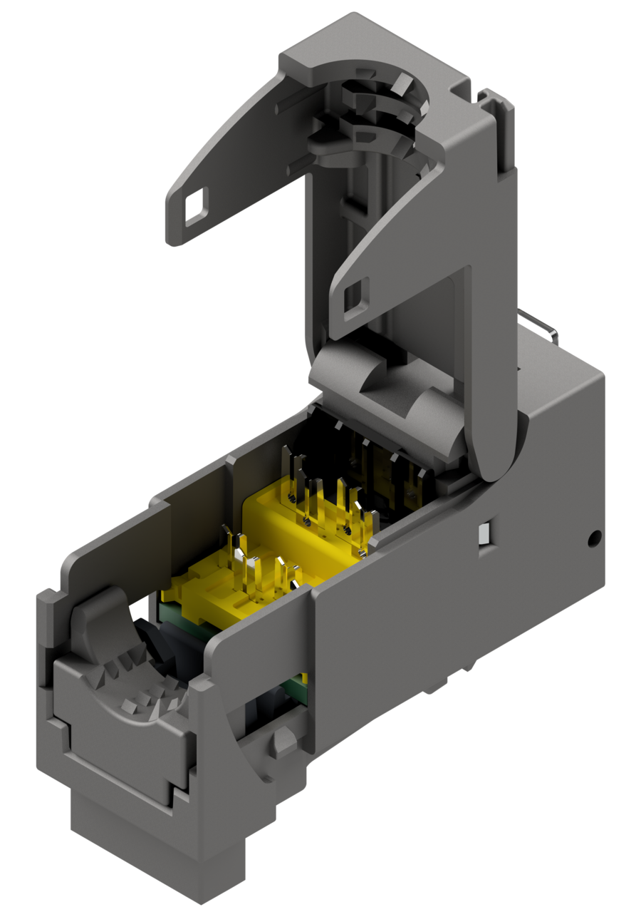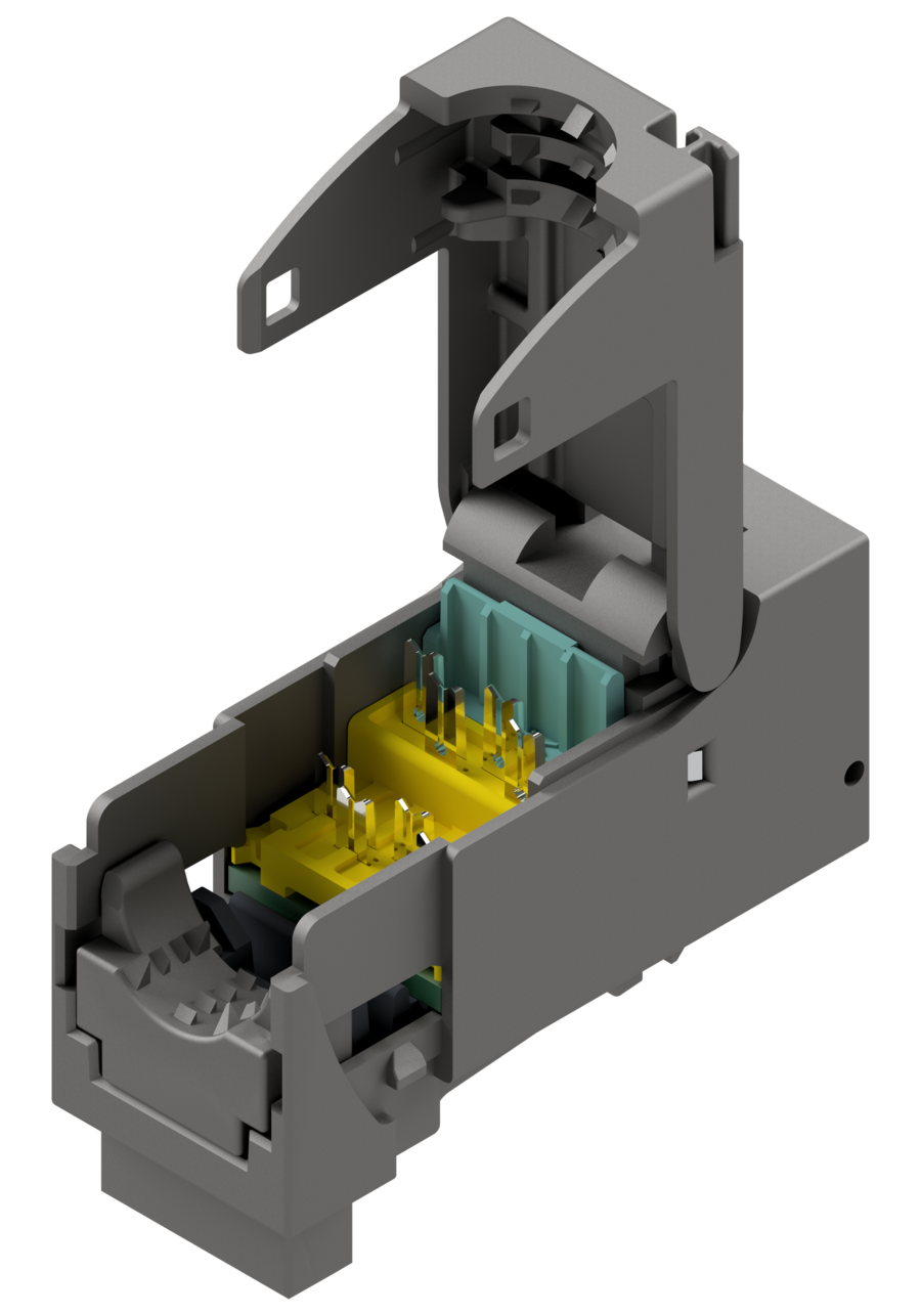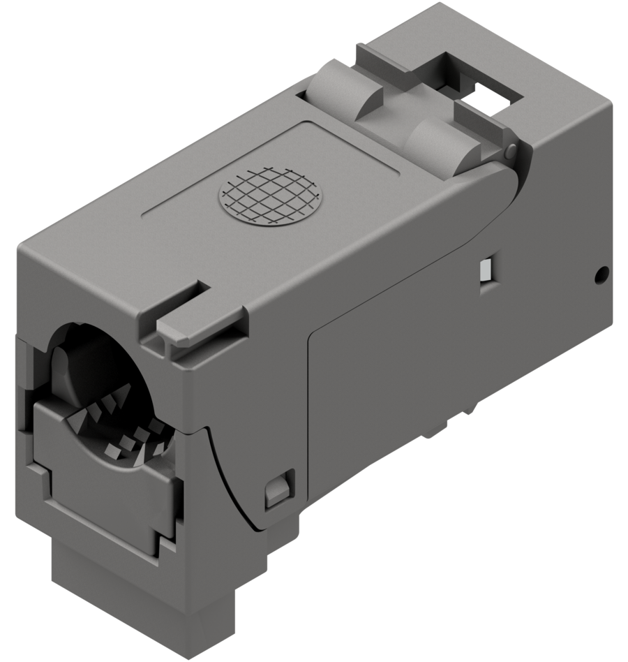 Mit dem fixLink® RJ45 Steckermodul erhält der Anwender einen im Feld konfektionierbaren RJ45-Stecker höchster Güte und Flexibilität für die Übertragung von 10 Gbit Ethernet. Das Modul ist für AWG 26-22 Datenkabel (Kabelzuführung gerade) ebenso wie für Verlegekabel AWG 24-22 und für Flexkabel/Patchkabel AWG 26/7 geeignet. Das Steckermodul ist geschirmt, wiederbeschaltbar und multiportfähig. Es kann mittels Seitenschneider in unter einer Minute konfektioniert werden. Durch die frei zugängliche Kontaktzone ist eine perfekte Konfektionsqualität und dadurch gesicherte Übertragungsperformance gewährleistet. Die 360°-Schirmabnahme wird beim Schließen des Moduls automatisch sichergestellt. Die spezielle Kontaktgeometrie in Verbindung mit einer 50 μ inch Goldauflage stellt 4PPoE gemäß IEEE 80.3bt unter allen Gegebenheiten sicher. Der Gehäusewerkstoff besteht aus vernickeltem Zinkdruckguss und erfüllt höchste Umwelt- und mechanische Anforderungen.